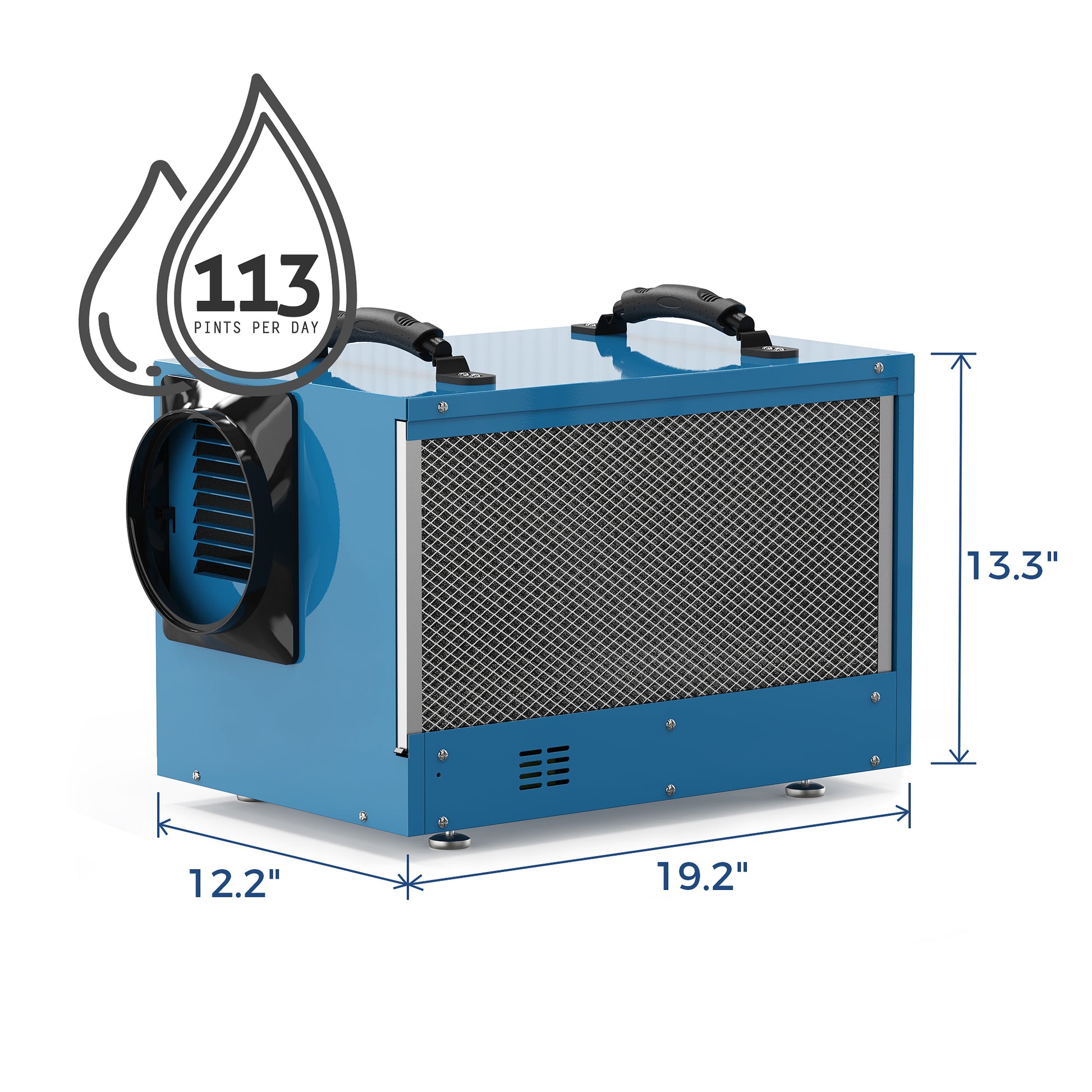 Although this commercial-grade dehumidifier is quite compact, it doesn't sacrifice water removal capability, removing up to 113 pints of water from the air per day (53 Pints/Day @ AHAM), is very quick and effective, and works up to 1,200 square feet, it's very convenient to use.