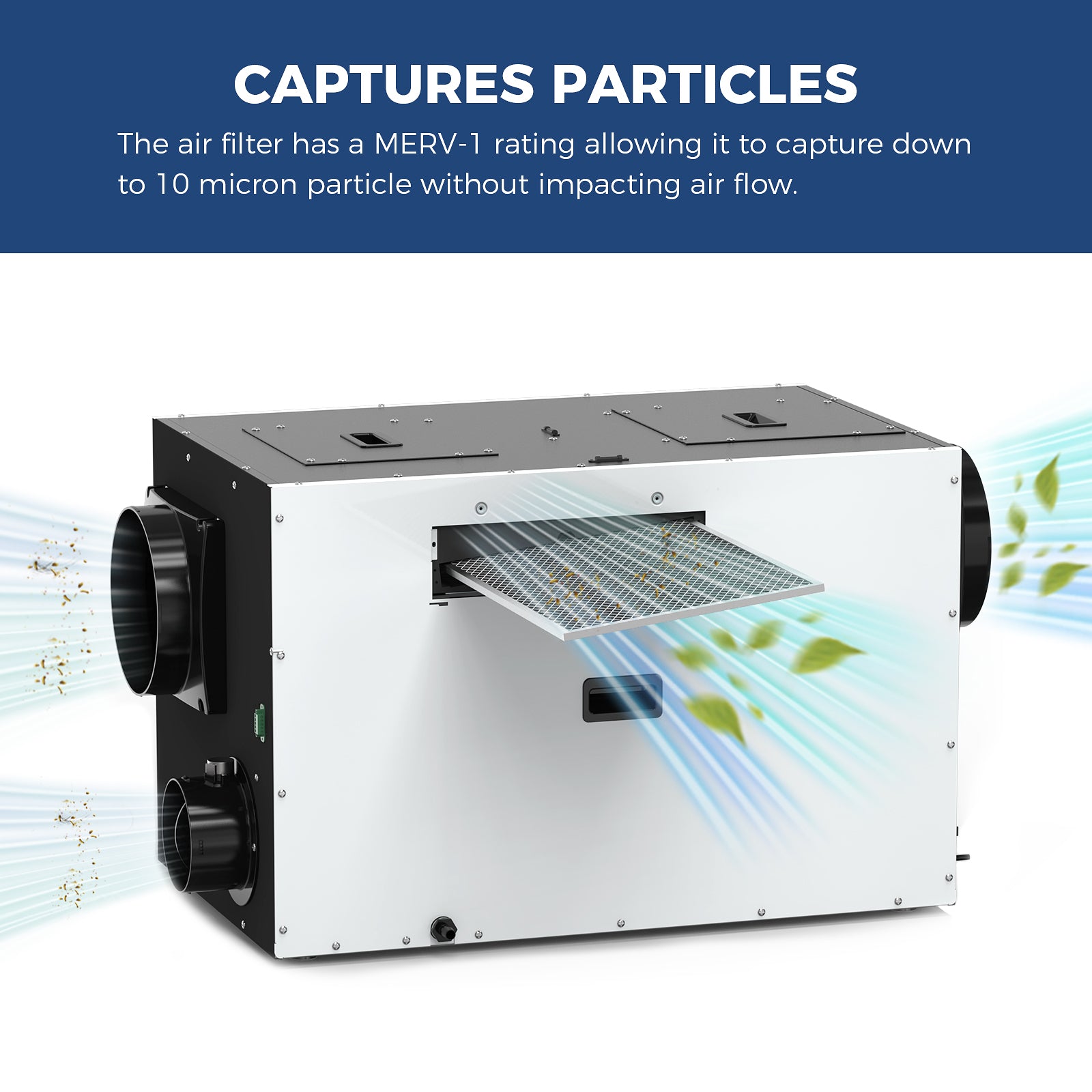 This MERV-1 filter effectively captures larger airborne particles, such as dust and debris, ensuring cleaner air and protecting your dehumidifier from internal buildup.