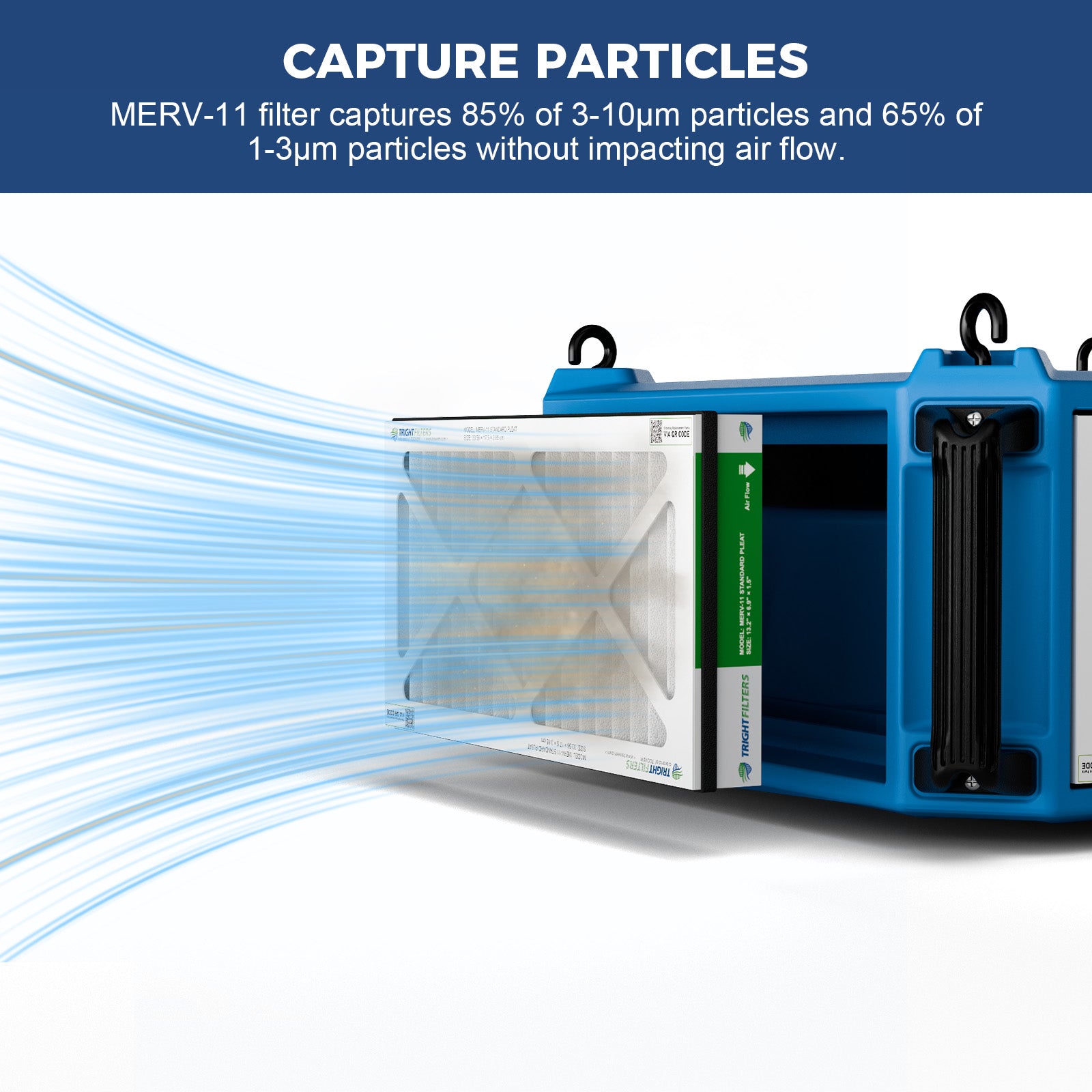 - FILTRATION GRADE: High efficiency MERV-11 filter captures 85% of 3-10μm particles and 65% of 1-3μm particles without impacting air flow. Quickly and safely filters airborne particles to protect internal components from clogging while improving your work environment.