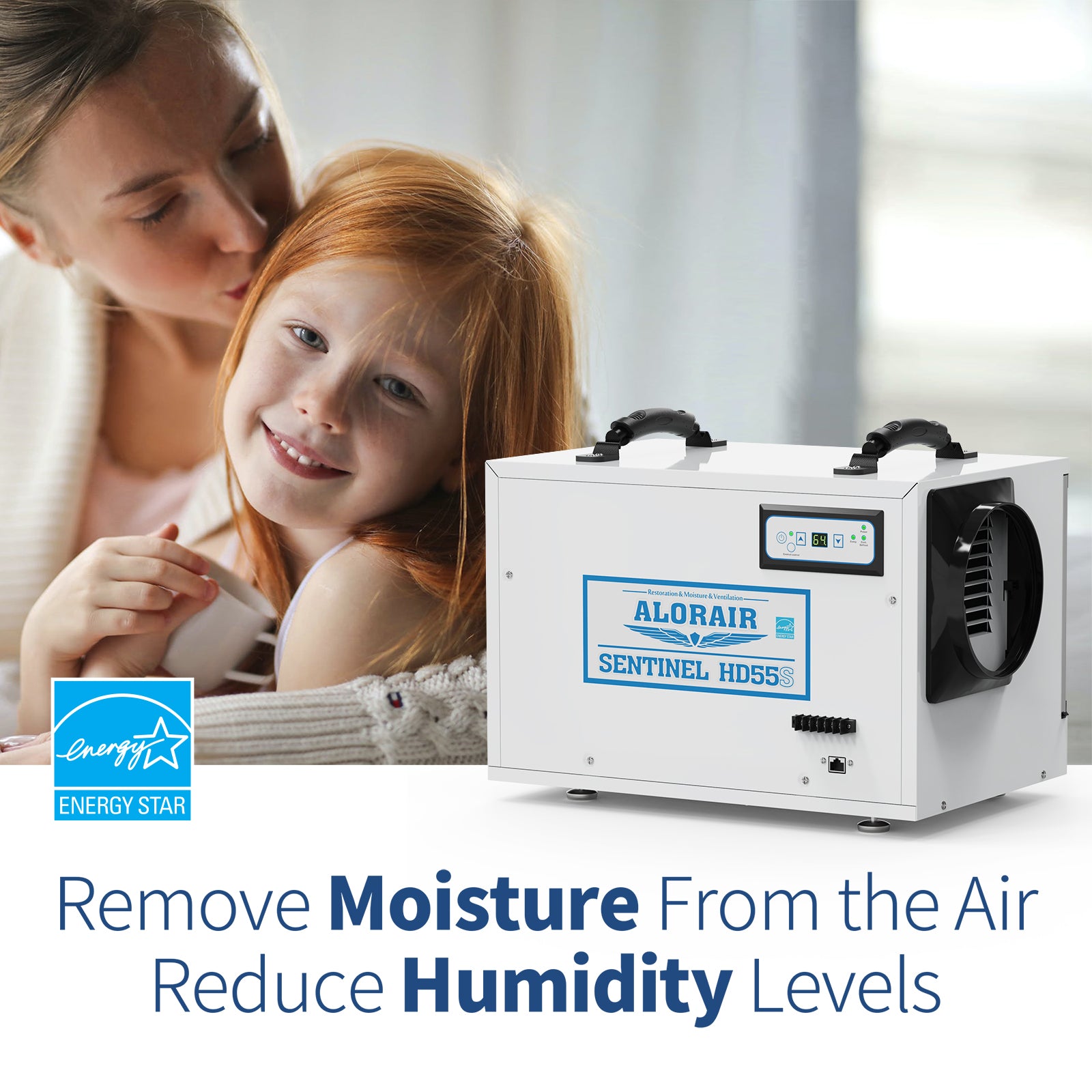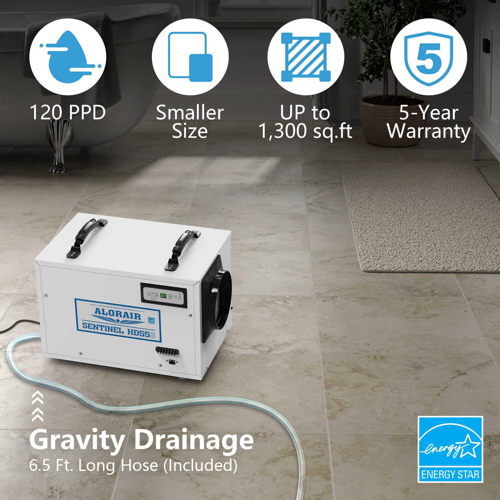 ALORAIR Basement/Crawl Space Dehumidifiers Removal 120 PPD (Saturation), 55 Pint Commercial Dehumidifier | Sentinel HD55S (White)