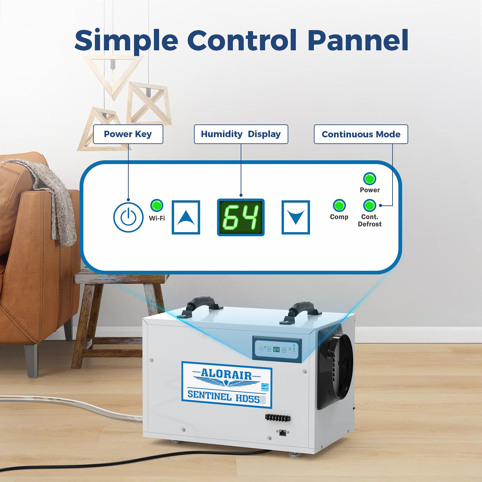 Control humidity effortlessly with ALORAIR's Energy Star certified Sentinel HD55S WiFi crawl space dehumidifier. This 120-pint unit offers remote monitoring/control while saving 25% on energy bills. Powerful moisture removal protects your home while reducing emissions and operating costs.