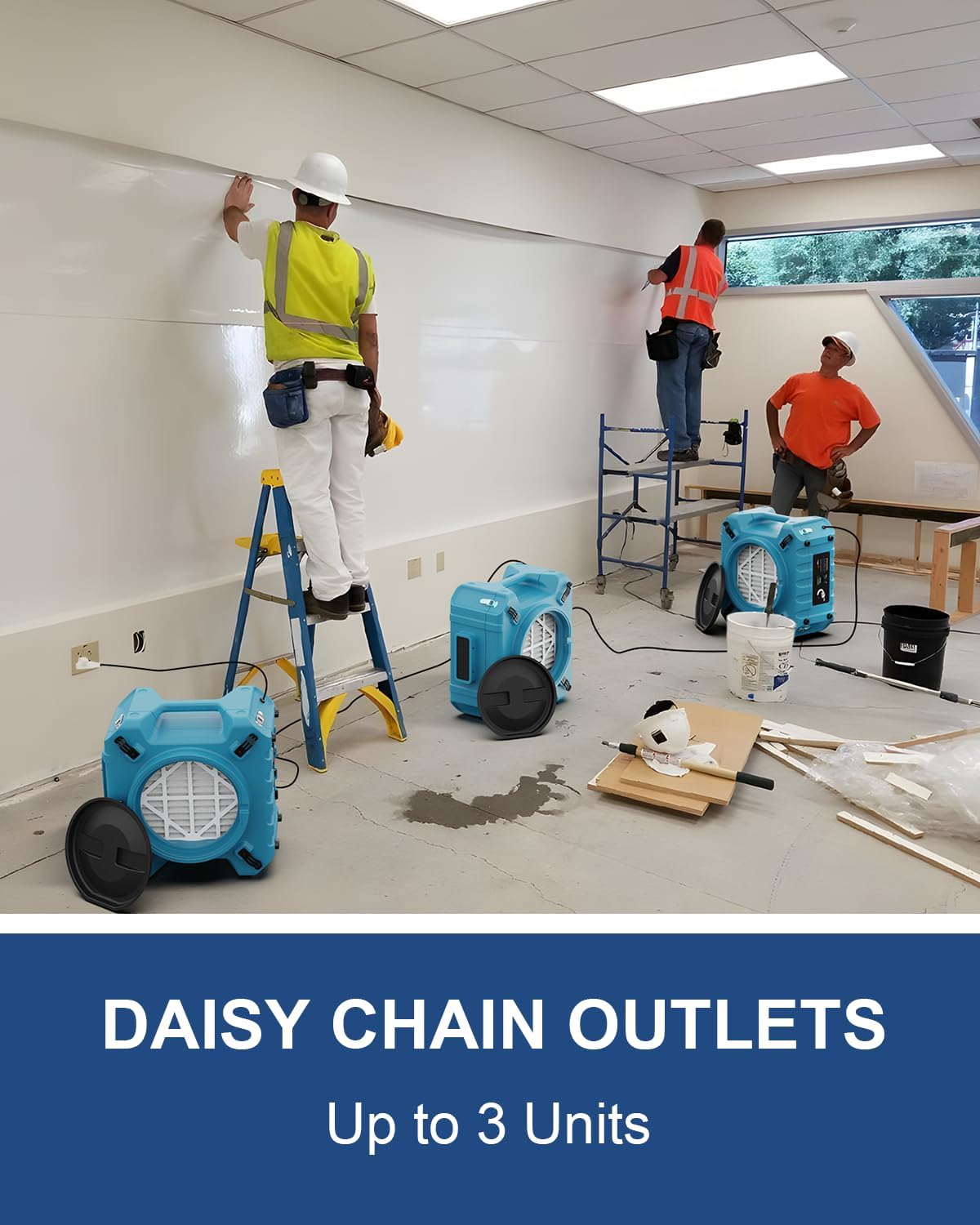 The Alorair Zeus Extreme axial air mover has an Air Mover blower with an airflow of 3000 CFM and a current draw of 2.5 amps, it offers two speed settings for versatile performance. Daisy chain up to six fans on a single 15-amp circuit, with five drying positions for maximum flexibility. Ideal for homes, workshops, factories, garages, gyms, and more, this high-velocity floor fan is perfect for any environment.