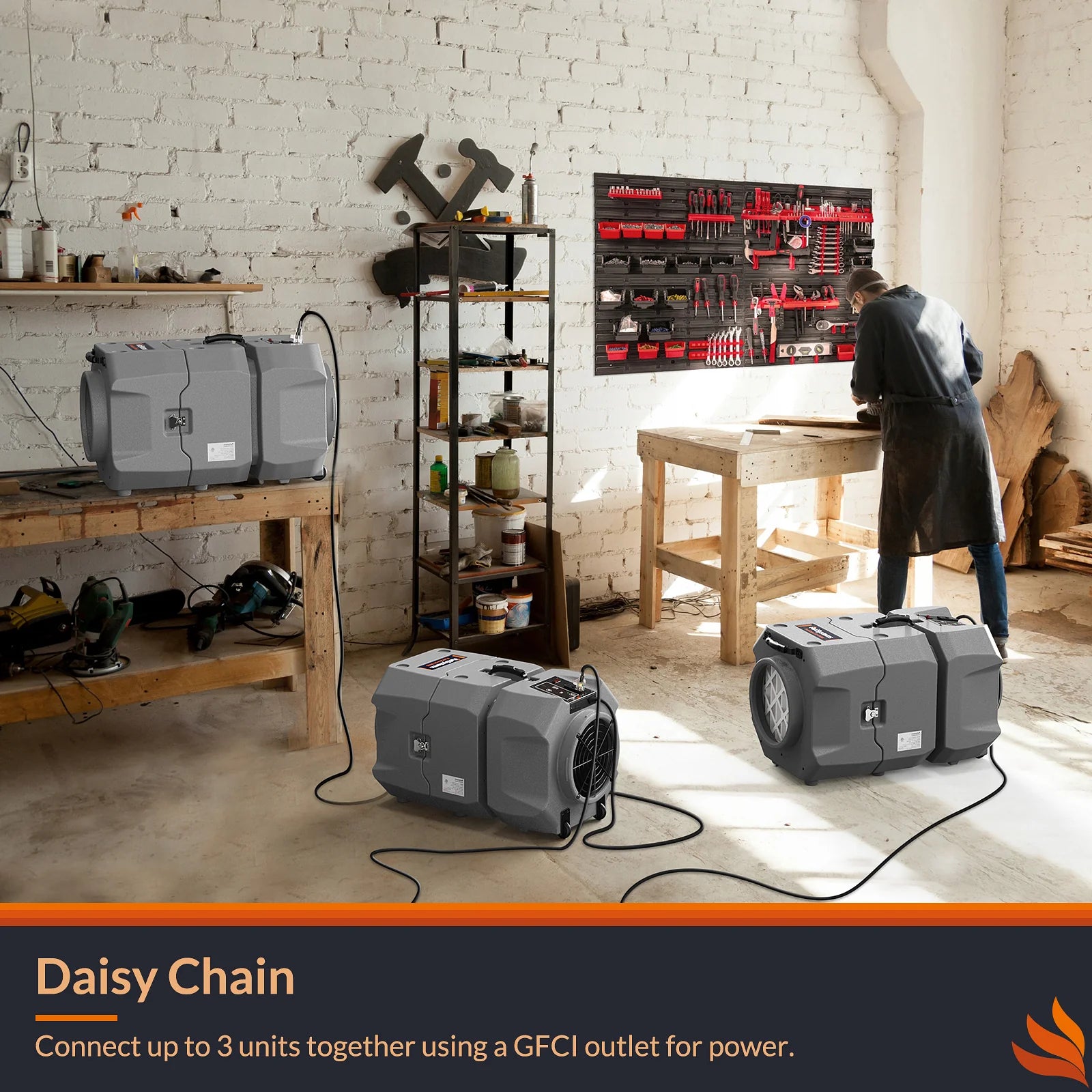 - Has a duplex outlet that allows multiple units to be daisy-chained