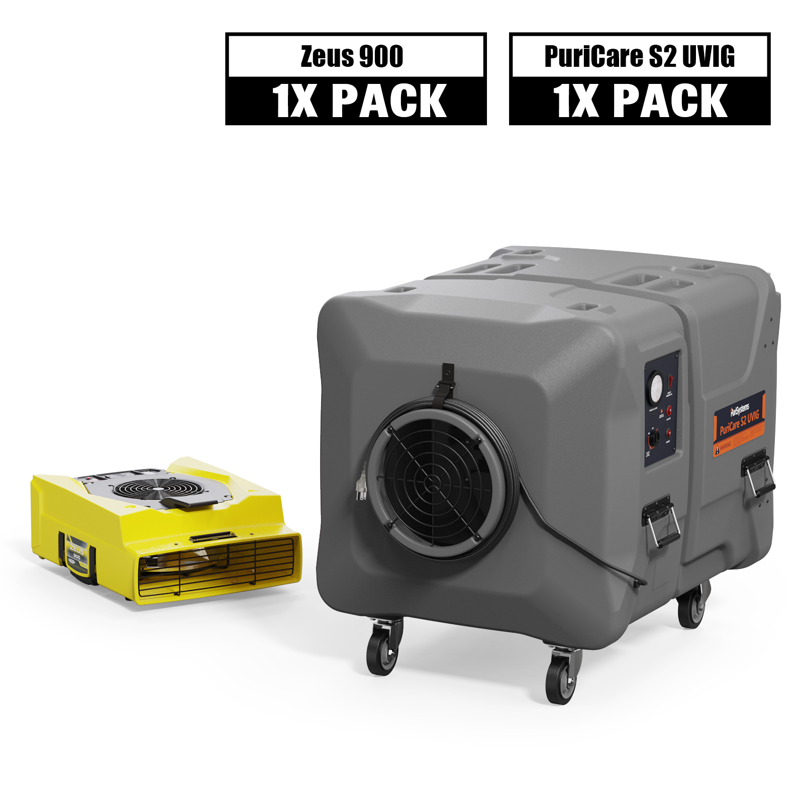 Alorair® Sanitization & Disinfection Combo Pack, 1 x Air Mover and 1 x Scrubber | Zeus 900 & PuriCare S2 UVIG