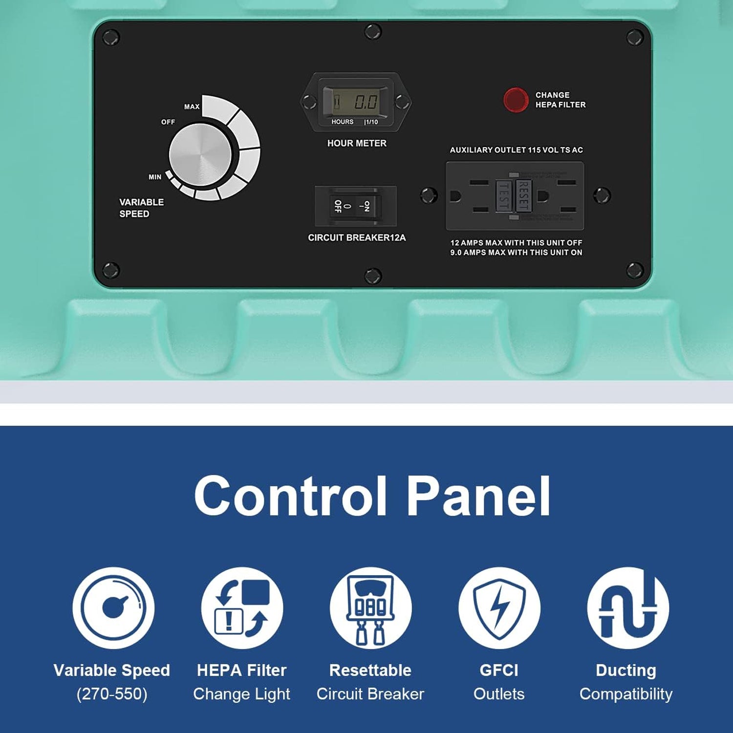 This portable air scrubber features a three-stage filtration system—including a pre-filter, an activated carbon filter, and a HEPA filter—with an airflow capacity of up to 550 CFM. It is designed for efficiency and ease of use, offering variable speed control, a filter change indicator, an hour meter display, and daisy-chain capability for linking up to three units from one power outlet. Constructed from durable rotomolded plastic, it is both stackable and lightweight for easy transport. With ductable 16-inch inlet and 8-inch outlet connections, it is well-suited for comprehensive air purification in restoration and industrial settings.