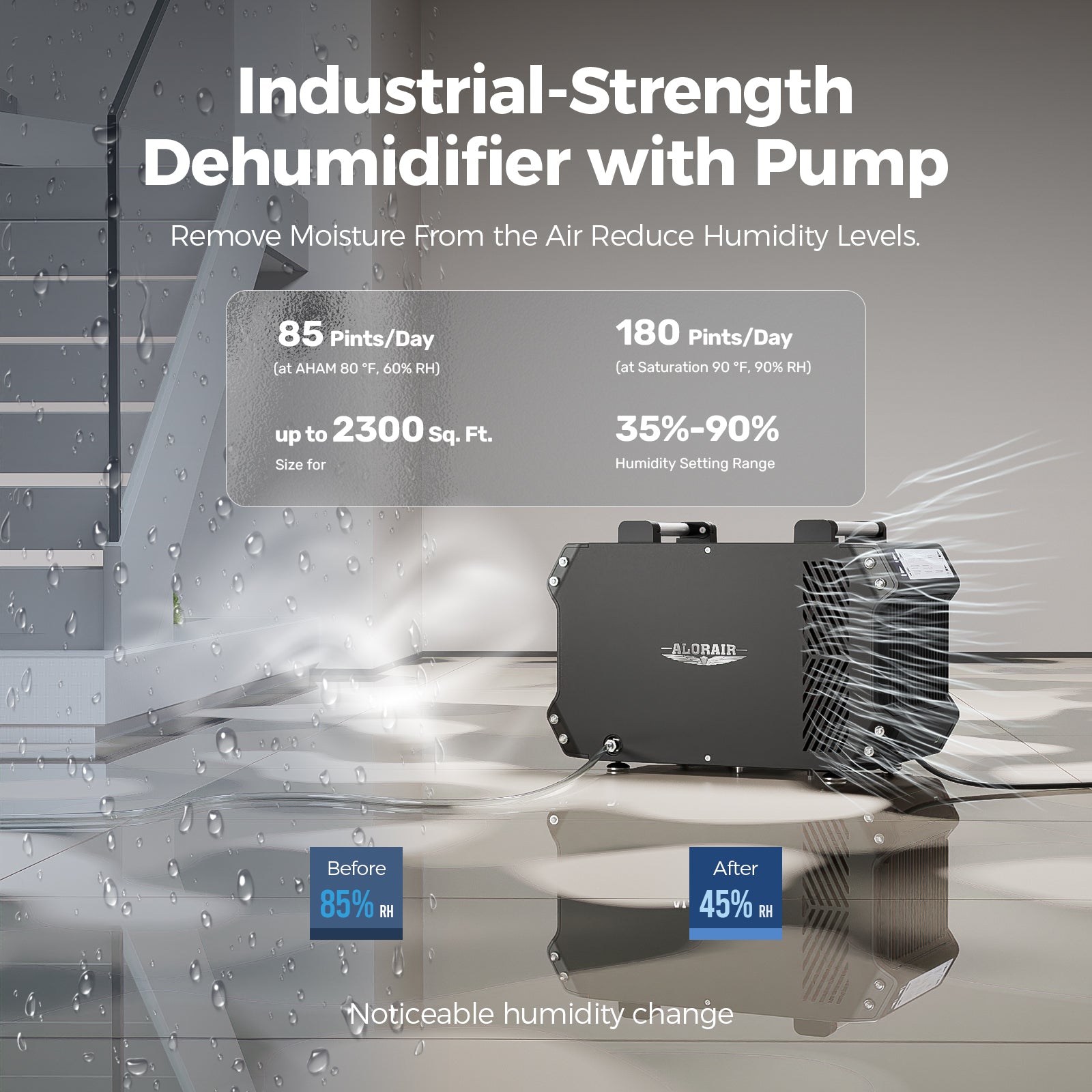 AlorAir 180 PPD Crawlspace Dehumidifiers Size for 2,300 Sq.Ft,with Pump and Drain Hose | Galaxy 85P