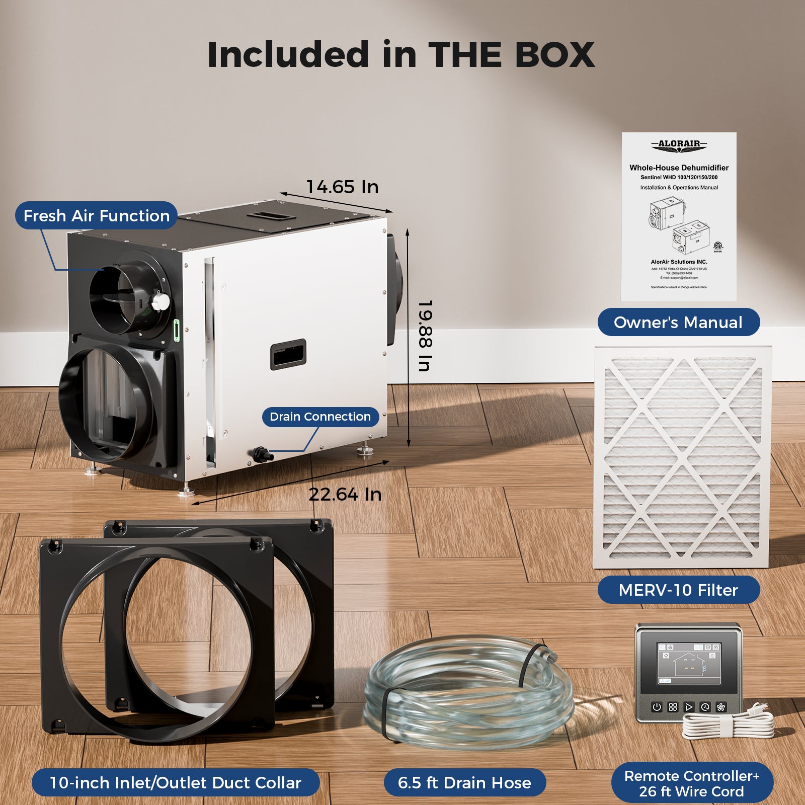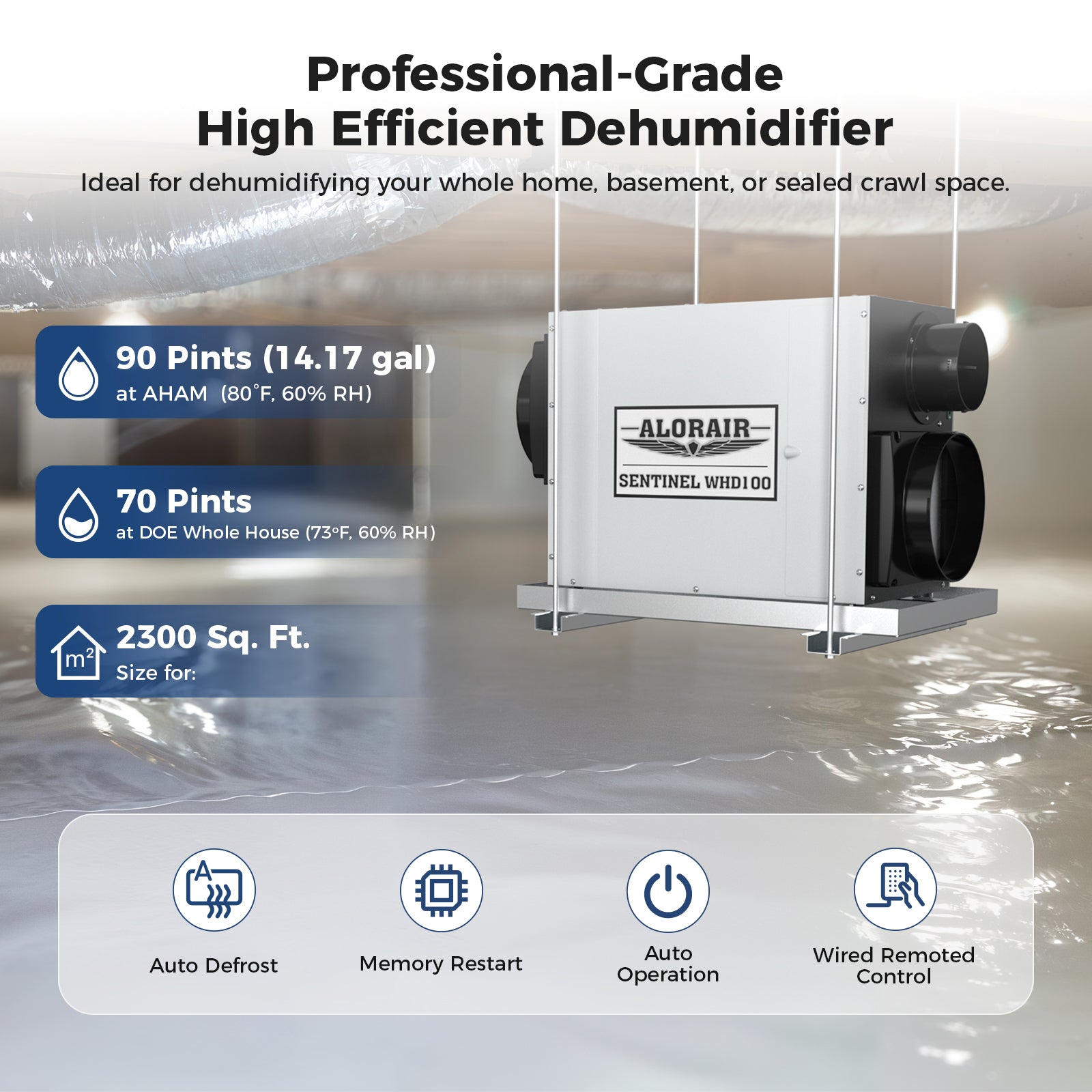 AlorAir® Sentinel WHD 100 | 90 PPD Commercial Grade Whole House Dehumidifier for 2300 Sq. Ft with Fresh Air Function