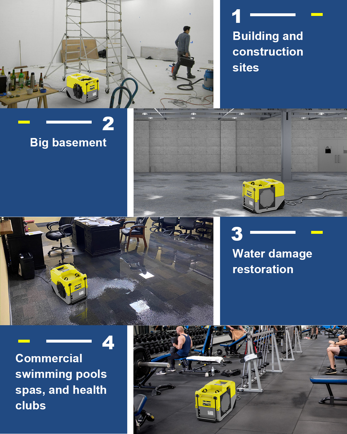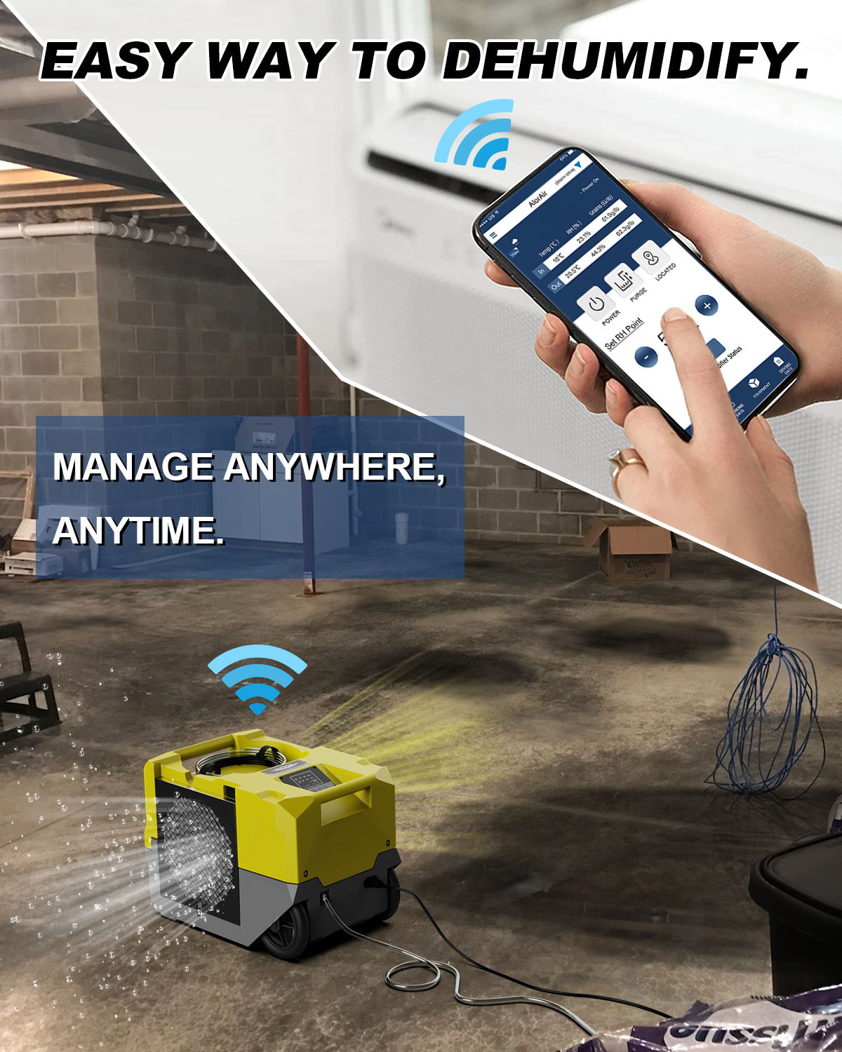 Rotomolded housing, practically Indestructible. 2 Big diameter wheels (8-inch) and Fold-down Handle, Easy to transport anywhere high-efficiency dehumidification is needed.