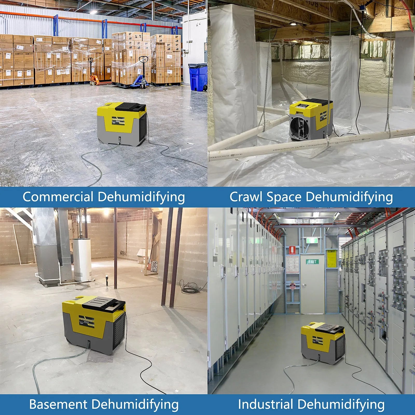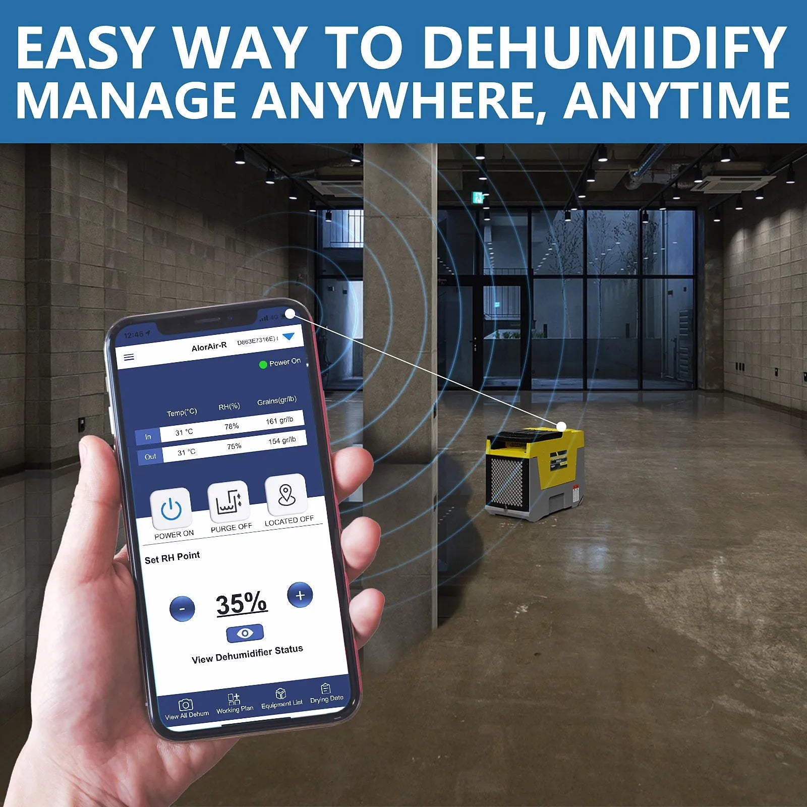 These dehumidifiers remove up to 180 PPD of moisture under saturation conditions (85 PPD at AHAM), with each unit suitable for areas up to 2,300 square feet. They feature app control, built-in condensate pumps, MERV-8 filtration, and LCD displays. With integrated wheels and handles for easy mobility, these units are ideal for flood restoration, basements, laboratories, offices, and commercial spaces requiring efficient moisture control and bacterial growth prevention.