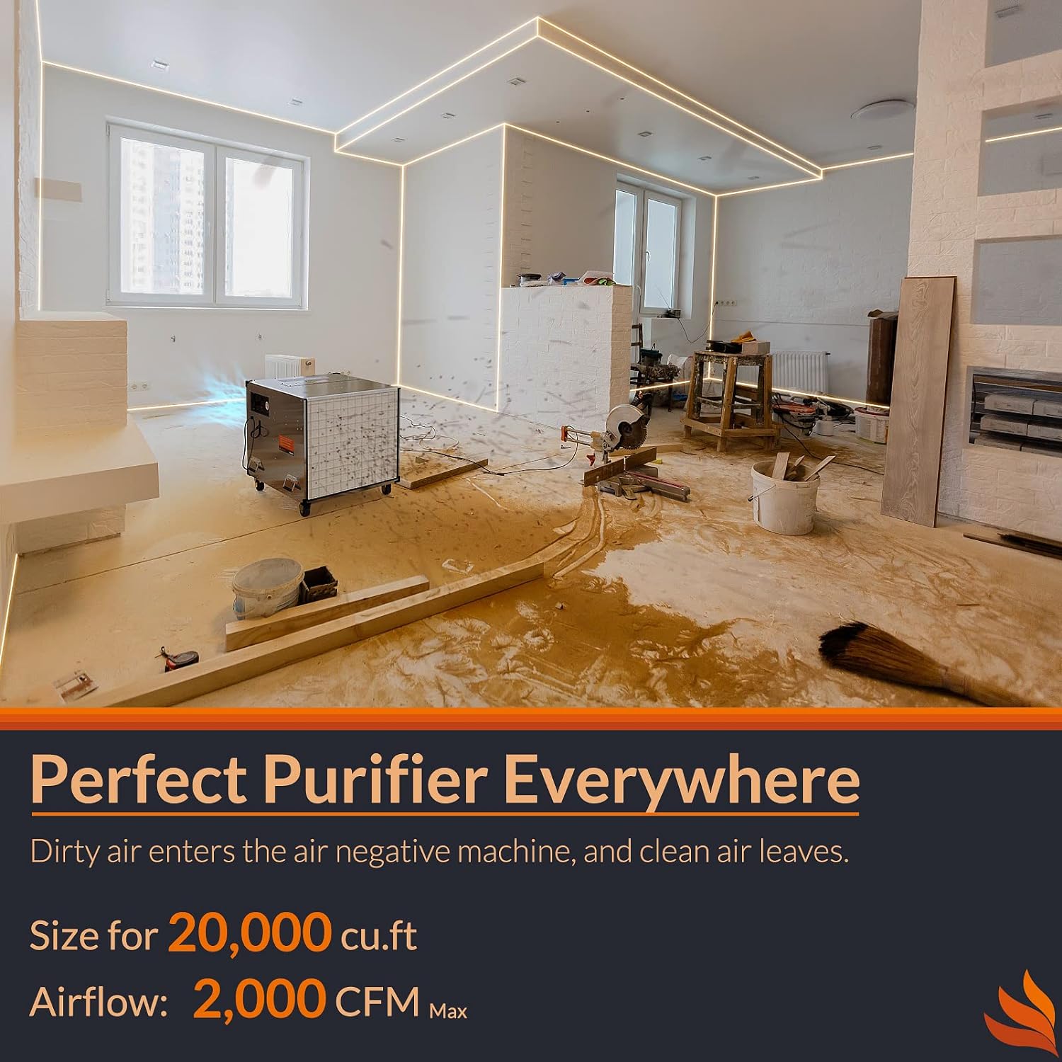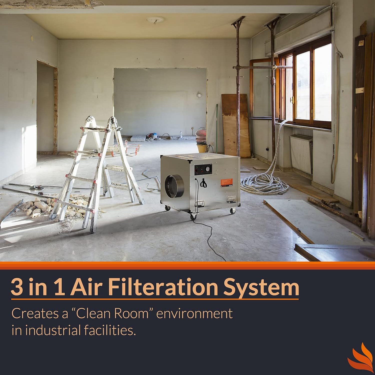It has super quiet Wheels and carrying Handles, Easy to transport anywhere high-efficiency air filtration is needed. Ideal for is used in emission reduction and sewage repair, water and fire damage repair, construction sites, decoration projects, and dust and odor control.
