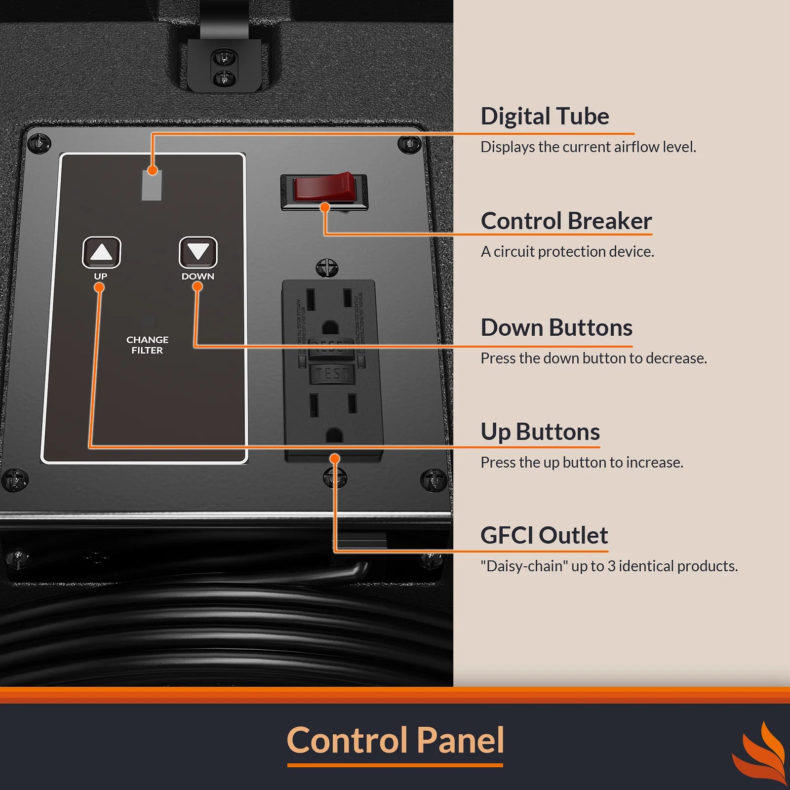- 900 CFM powerful fan effectively