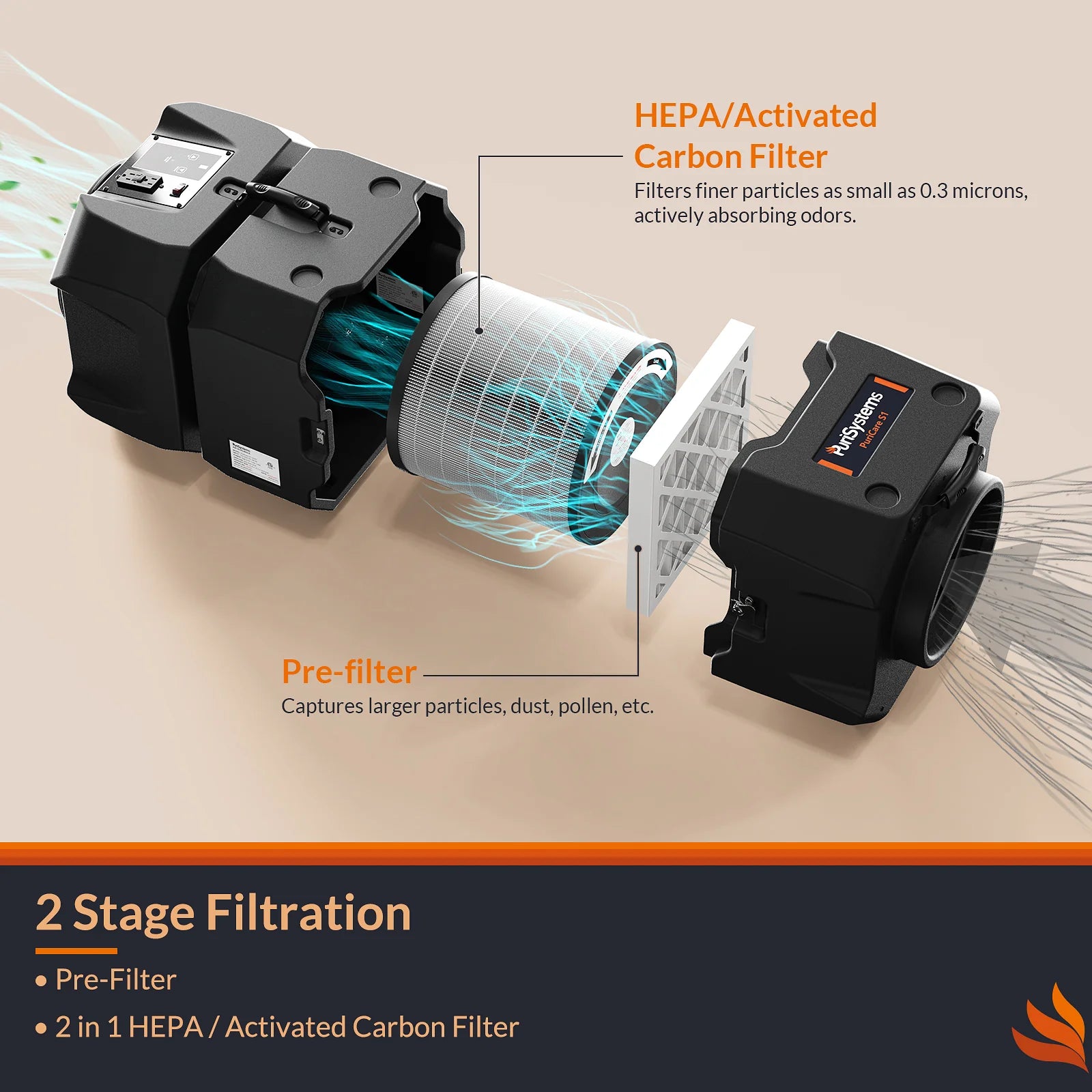 - Large and microscopic particles while also eliminating odors
